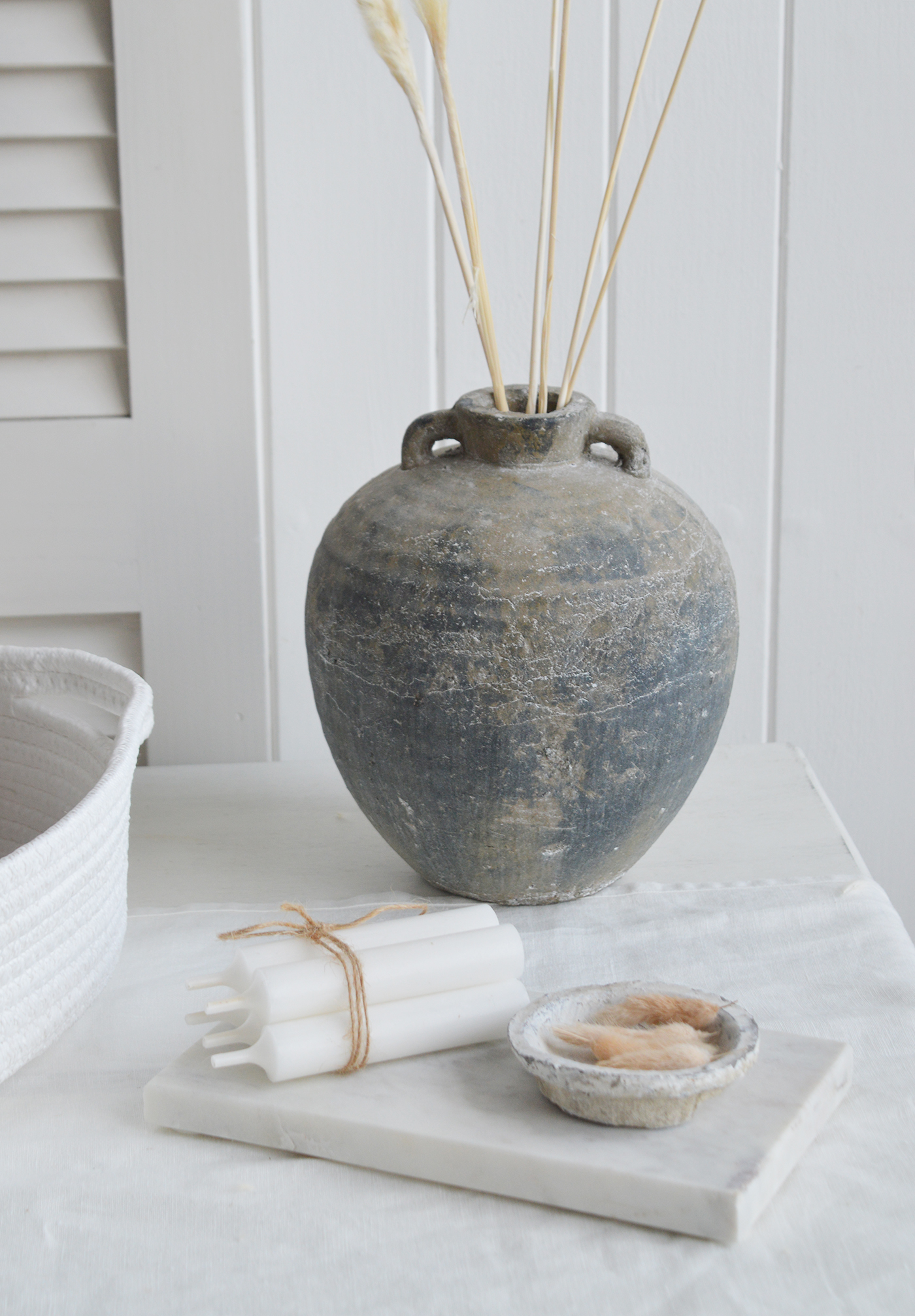 Timeless styled jars featuring a grey distressed finish for a natural vintage feel. Place on a shelf or console, singly or together, simply as they are or filled to bring your personality to your interior