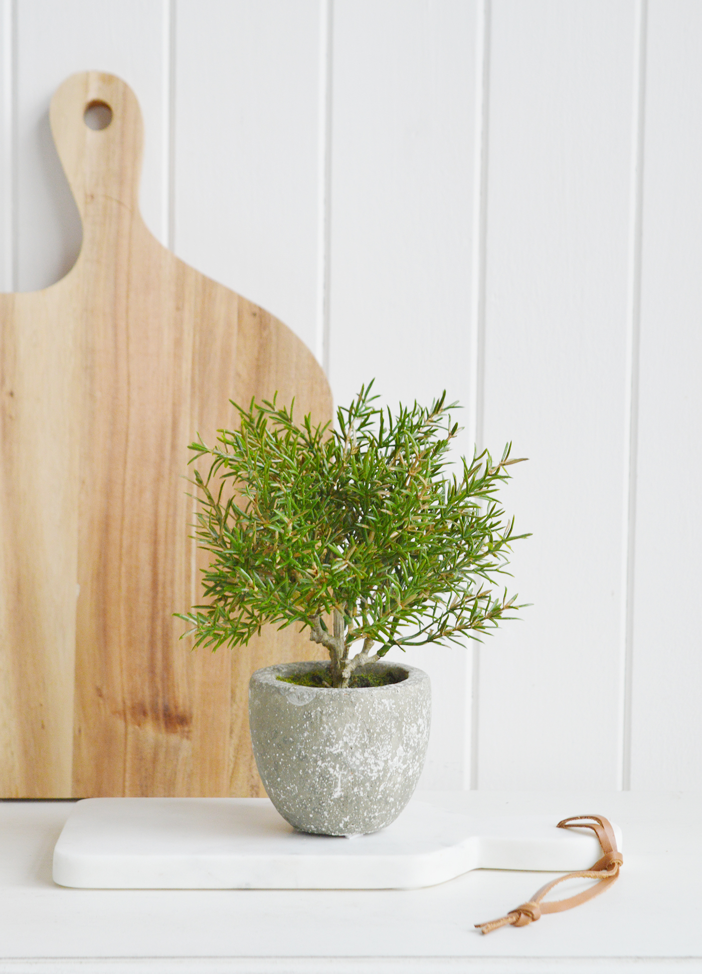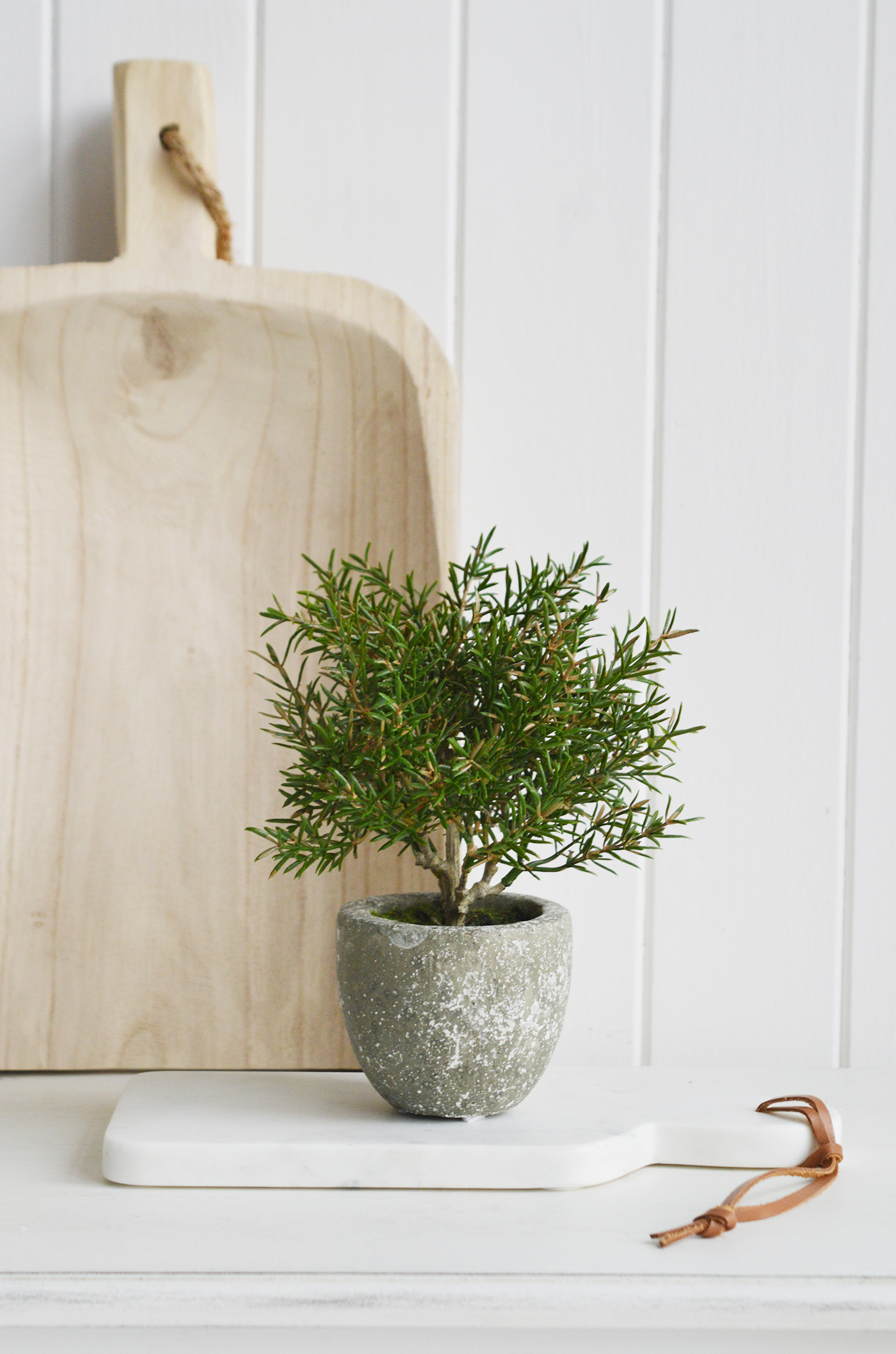 Bring life to a space with our little faux Rosemary bush potted in a rustic stone effect pot.