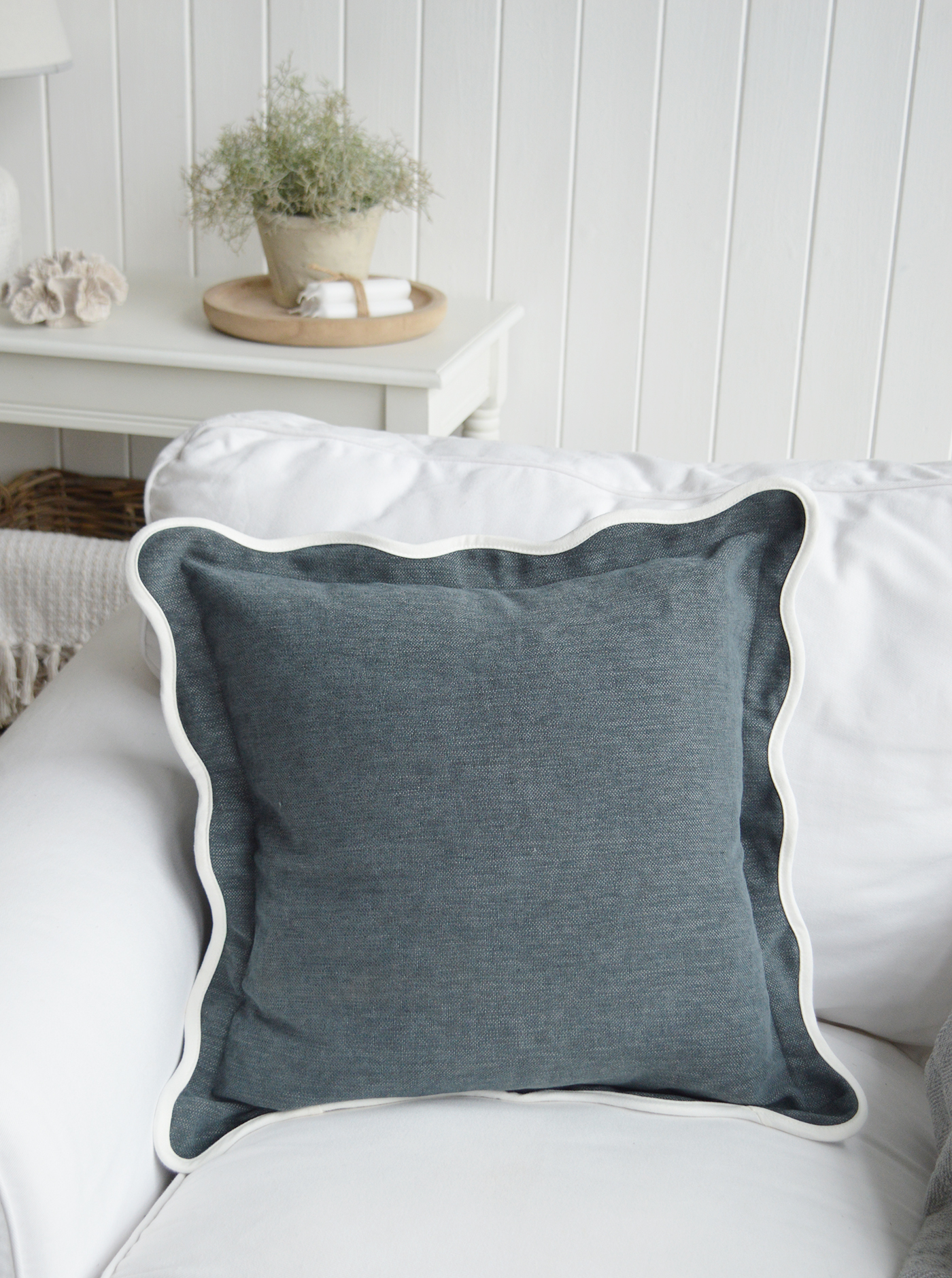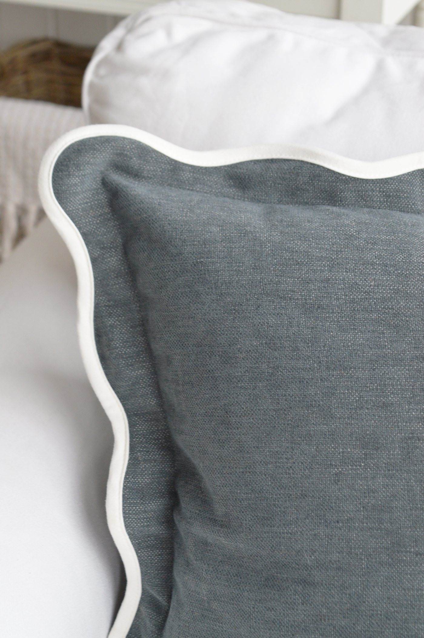 Inspired by the timeless charm of Cape Cod's coastal towns, The Chatham Scallop Cushion brings understated elegance to your home. Made from a natural linen-blend fabric, this cushion features a delicate grey scalloped edge — a subtle detail that echoes the gentle curves of seaside dunes and the tailored craftsmanship of classic New England design.