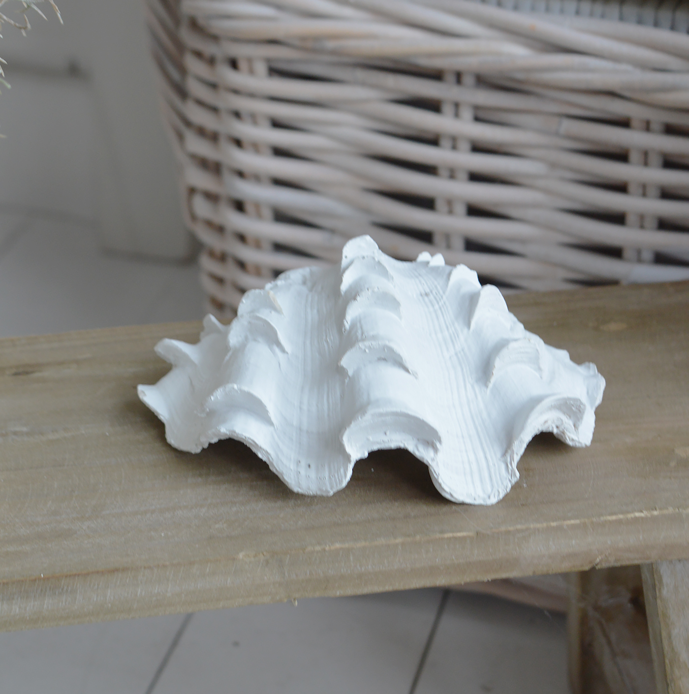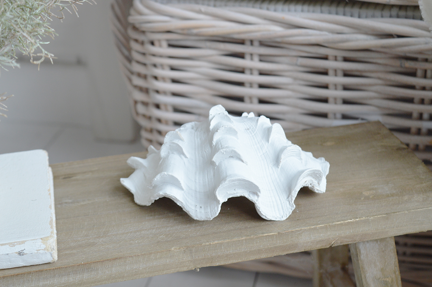 Style your coffee table or shelves with a touch of coastal beauty to your interior while creating the luxury look of a Hamptons room with our white faux conch shell.