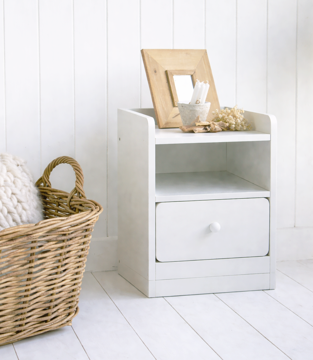 The Lindford Bedside Table is a timeless soft white one or two-drawer piece designed to bring effortless calm to your bedroom. With its softly rounded drawer fronts, simple white knobs and clean silhouette, Lindford feels understated yet beautifully considered